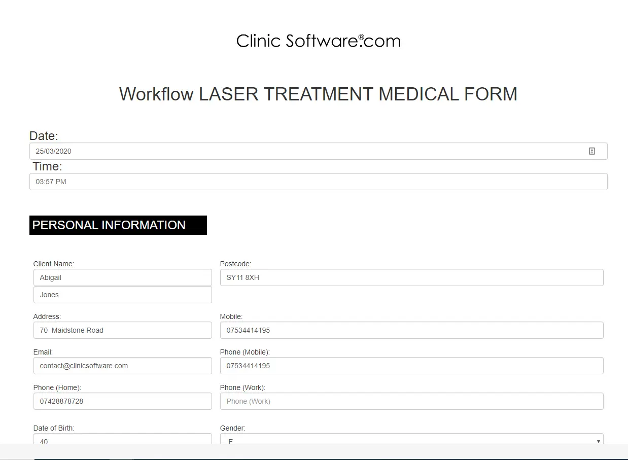 Atvērsies darbplūsma, un jūs redzēsiet visu klienta personisko informāciju.Varat ievadīt piezīmes no klienta konsultācijas.